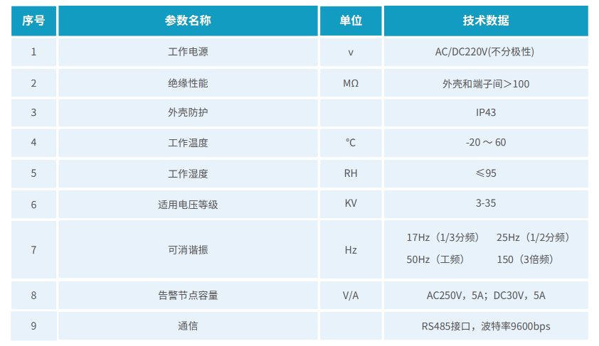 出:过压故障、低压故障、失压故障、接地故障、断线故障和铁磁谐振故障。本装置对电力系统的运行故障均准确判断,动作迅速。如果是接地、过压、低压、失压、失电、断线等故障,微机控制器发出报警驱动信号,使外部报警电路立刻工作,发出报警;如果是电网谐振,无论是倍频(3倍频)、分频(2分频、3分频)还是工频,微机控制器都可有效识别并立刻发出指令使消谐电路投入,实现快速消谐,并发出报警。完善地实现了电压监测、接地监测、消除谐振等功能,并能实时记录发生的故障以及故障发生的时间。本装置可广泛应用于发电厂、变电站及钢铁、煤炭、石油化工等大型厂矿企业的电力系统。